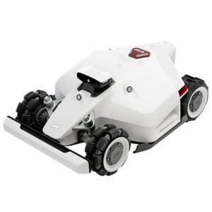 A robotic lawn mower utilizing RTK GPS and LiDAR for precise navigation, eliminating the need for boundary wires. Features include adjustable cutting heights, obstacle avoidance, and a rain sensor for autonomous operation.